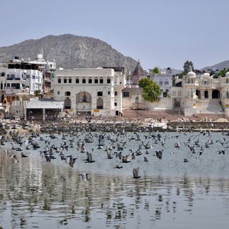 - Поймаем Дзен на священном озере в городе Пушкар. Посетим единственный храм создателя Брахмы. Поднимемся на гору, чтобы полюбоваться закатом.