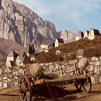 С комфортом на внедорожнике проедем по горным дорогам Северной Осетии к её самым значимым достопримечательностям. Побываем в ущелье с трагической историей, прогуляемся к Мидаграбинским водопадам, посетим «город мёртвых», увидим самый высокогорный монастырь в России и древние башни. По пути будет много современных арт-объектов, в числе которых качели над пропастью, «Зеркальный барс» и лавочка с надписью «Счастье не за горами — оно в горах». Не только сфотографируемся с эффектными видами, но и отведаем осетинских пирогов с домашним вином. Тур проводится только для вашей компании.