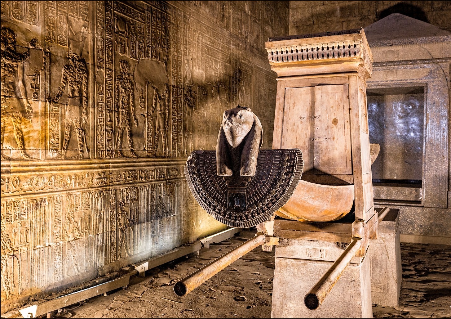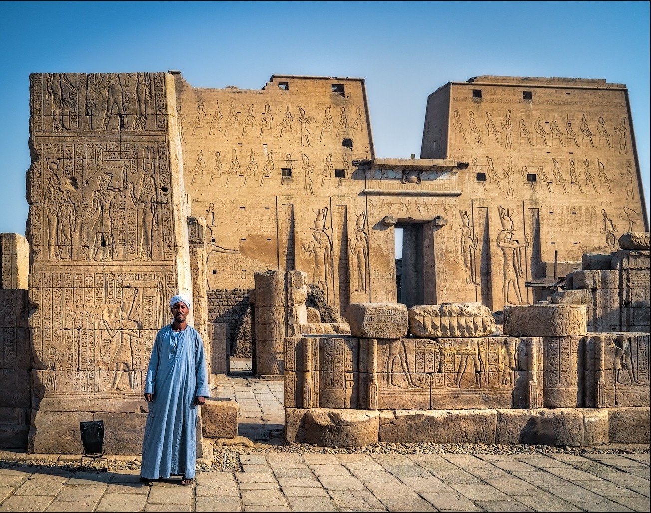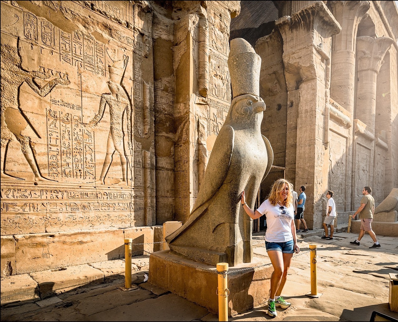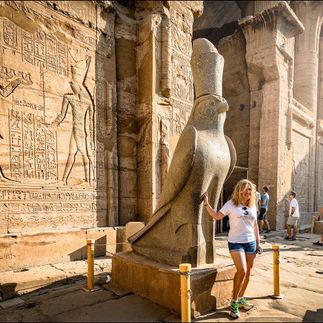 Утренне посещение храма Эдфу, также посвященный богу неба и солнца Гору, одному из главных богов древнеегипетского пантеона. Легенда гласит, что храм построен на том месте, где Гор отомстил Сету за смерть своего отца Осириса. На пилоне у входа в храм видны шесть крылатых божеств, каждое из которых немного отличается от остальных. У входа в храм стоит трехметровая статуя Гора из черного гранита.