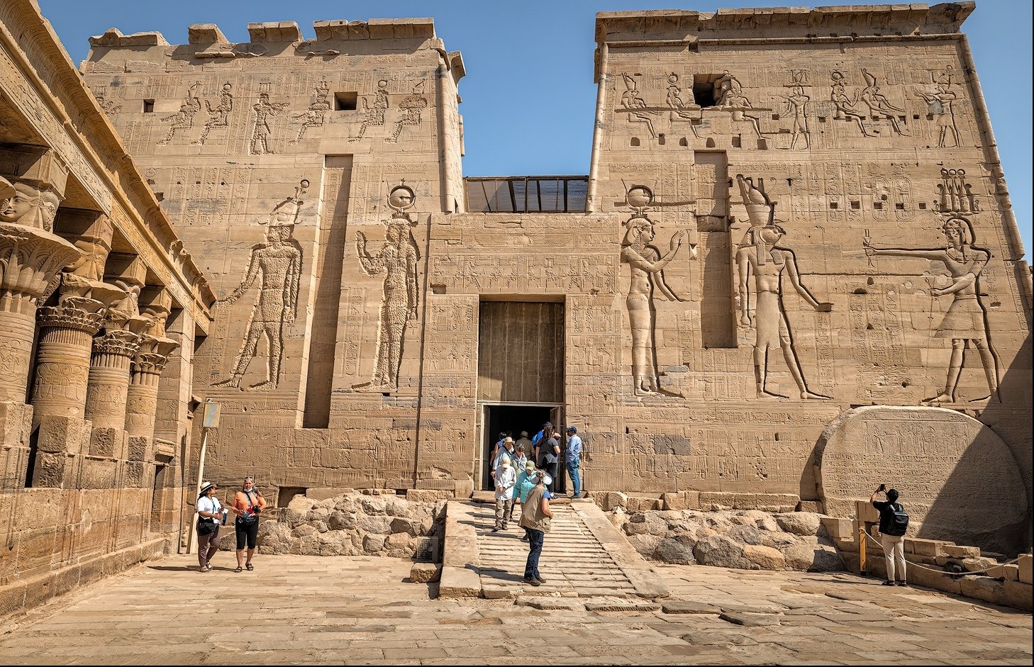 Ранним рейсом вылетаем из Каира в Асуан. В аэропорту Асуана нас ждут машины, чтобы отвезти на остров Филе к храму богини Изиды. Возведение храма началось во времена царствования династии Птолемеев и завершилось в Iii-м веке нашей эры при императоре Каракалле. По древнему поверью, сюда запрещалось приходить простым смертным, только жрецы имели право проводить священные ритуалы у места вечного сна бога Осириса.