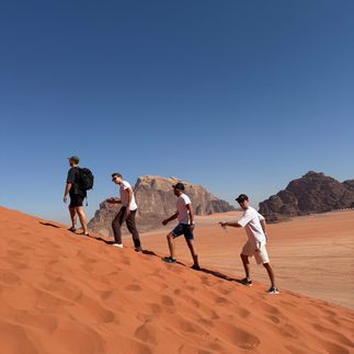 Мы проведём ночь в пустыне Вади Рам под миллионом звёзд, прокатимся на джипах по огромным красным дюнам, искупаемся в Красном море и пройдём по живописному каньону, где тропа идёт прямо по воде.