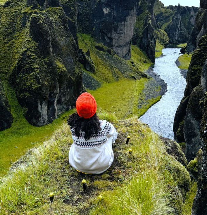 К чёрту жалкие остатки эмоций! Мы всё-таки едем в каньон, где снимали сцены Игры Престолов. Кароче, более миллиона лет назад образовался каньон, глубиной 100 метров, с обычным для Исландии благозвучным названием Фьядрарглюфур. Внутри каньона течёт река, а по краям открывается ибейший вид на равнины и ледниковые потоки.