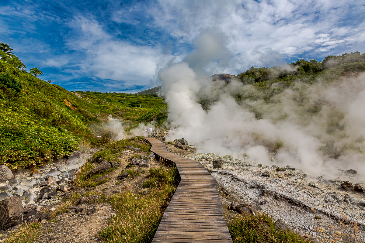 Наше приключение начнется с захватывающего джип-тура к самому южному вулкану Курильской гряды вулкану Головнина. Мы не будем долго и утомительно идти от дороги, а подъедем на автомобилях на самый край кальдеры, к лучшим смотровым площадкам. В ясную погоду мы увидим японский остров Хоккайдо, до которого здесь буквально рукой подать.