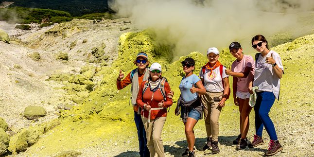 Для самых азартных и выносливых предусмотрена дополнительная платная экскурсия восхождение на вершину вулкана. Тех, кто преодолеет сложный путь, ждет королевская награда панорамный вид с высшей точки, откуда в ясную погоду как на ладони видны весь Кунашир, соседний Шикотан и берега японского острова Хоккайдо.