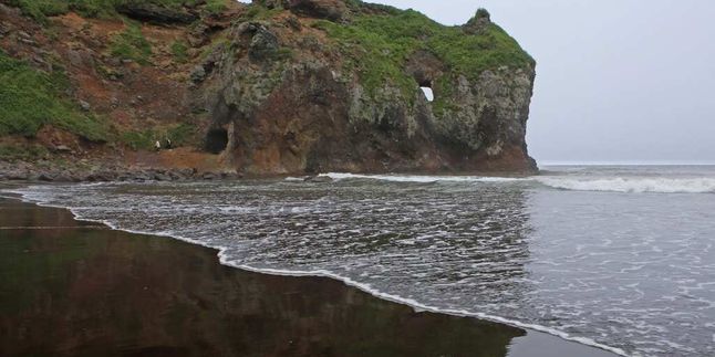 Чуть позже вы дойдёте до дикого пляжа, которому, кажется, не свойственны полумеры — песок здесь либо кварцевый белый, либо титано-магнитовый чёрный. А на фоне — величественные серьёзные вулканы Сахалина и кристально чистые воды Тихого океана. Глядя на такое, невозможно остаться равнодушным. Обед на берегу океана.
