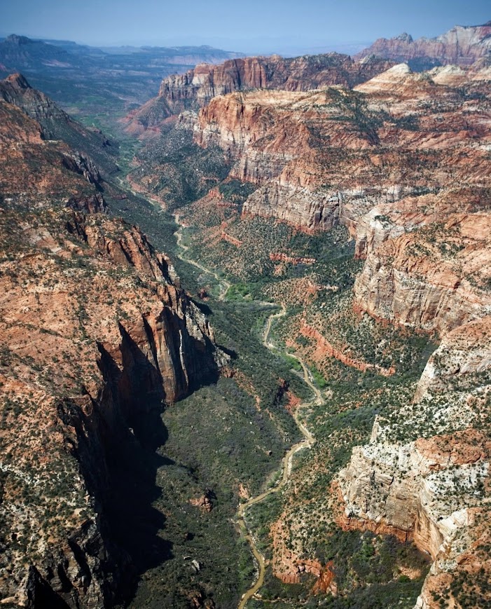 В песчанике Навахо Девственная река пробила замысловатые восхитительные каньоны. Скалы поражают своим оранжевым цветом. Кое-где между ним появляются черные слои следы вулканической лавы. Часто можно увидеть колонии бактерий в виде замысловатых узоров на отвесных стенах.