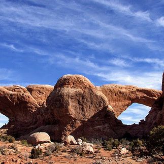 В парке зарегистрировано около 2 тысяч арок, разных форм и размеров. Самая длинная - Landscape Arch (93 метра). Она же и самая тонкая, скорее похожая на каменную ленточку. Силуэт скал напоминает контуры небоскребов Нью Йорка, поэтому первая обзорная площадка называется Парк Авеню. Один из монолитов напоминает стоящих плечом к плечу людей и называется Три товарища.