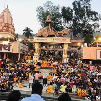 Вечер: От личного — ко всеобщему. Ганга Арати Перед закатом мы отправимся на торжественную вечернюю церемонию Ганга Арати в ашраме Пармат Никетан (или на другой набережной). Если утром вы говорили с рекой наедине, то теперь станете частью тысячеголосой молитвы. Пение, огни сотен лампад, движущихся в едином ритме, густой воздух, напоённый благовониями, — это мощнейший коллективный поток энергии, в который вы сможете отпустить своё утреннее намерение, доверив его реке и вечернему небу.