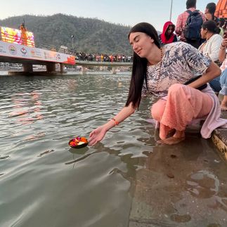 Утро: Санкальпа — семя ваших перемен На рассвете — пробуждающая практика йоги, чтобы тело и ум зазвучали в унисон. После лёгкого завтрака — особое путешествие: мы переправимся на традиционной лодке на другой, тихий берег Ганги. Здесь, в уединении, под руководством учителя пройдёт древняя церемония Санкальпы — осознанное создание личного намерения. Это не просто желание, а семя, которое вы посадите в плодородную почву священной реки. Огонь, цветы, мантры и полная тишина — только ваша мысль, ваше дыхание и река, которая всё уносит и всё принимает.