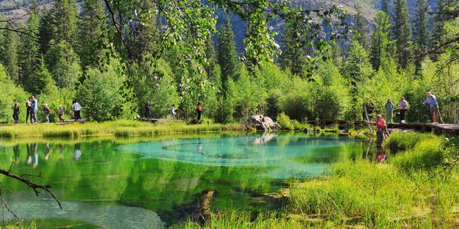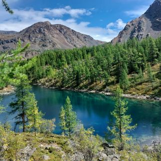 Окруженные величественными алтайскими кедрами и соснами, а также зелеными лугами, эти озера меняют цвет в зависимости от освещения, переливаясь от темно-синего до бирюзово-зеленого.