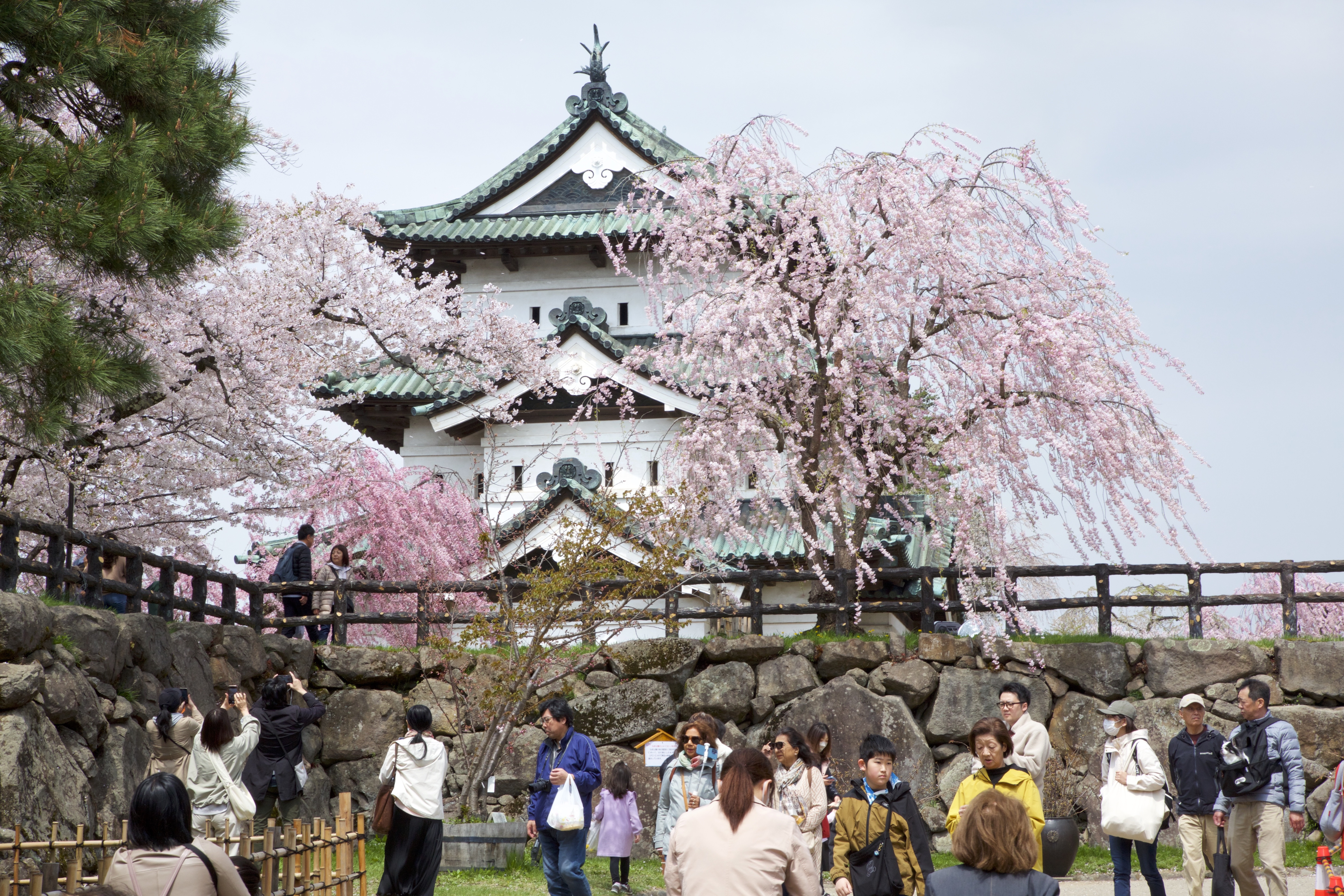 Замок Хиросаки эпохи Эдо известен фестивалем цветения сакуры. С большой вероятностью к нашему прибытию сакура уже будет опадать, но это особенное время в эстетическом созерцании, говорящее о скоротечности жизни.