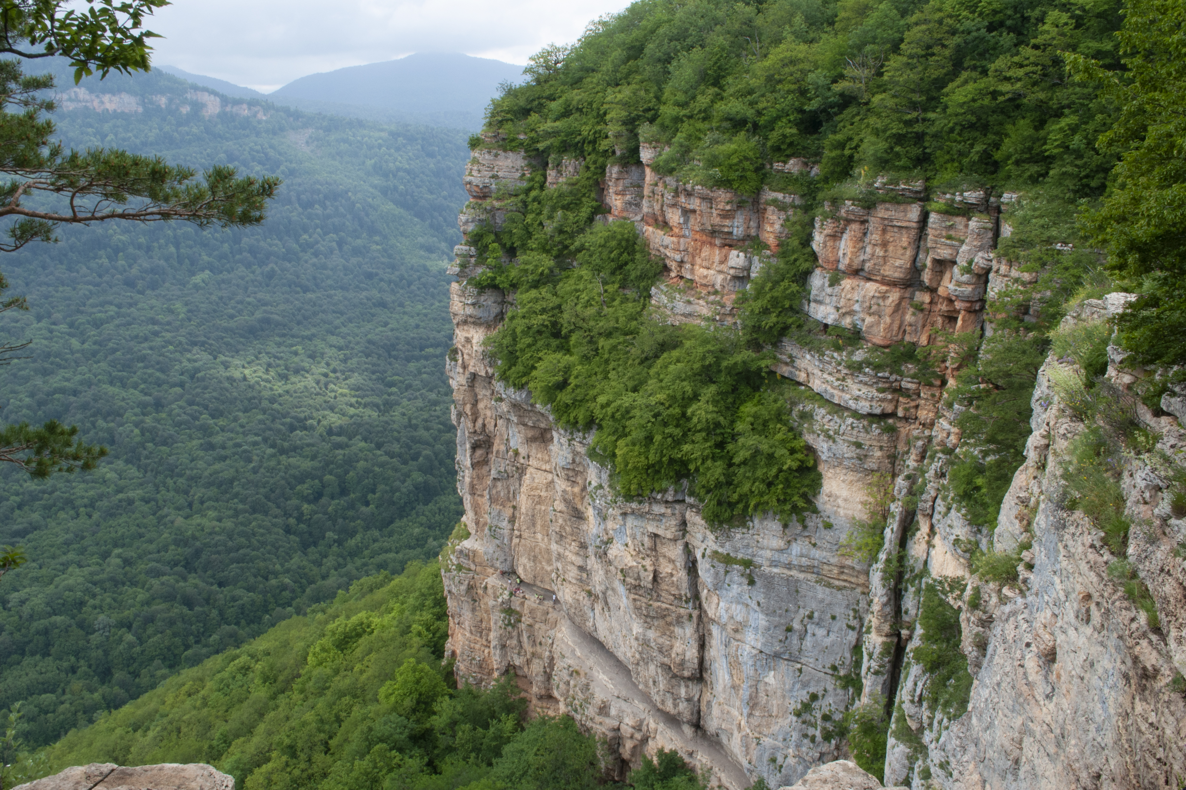 После завтрака, выезжаем в направлении плато Лаго-Наки (20 км.). Добравшись до ущелья Желоб (1700 метров над уровнем моря) поднимаемся на смотровую точку. Отсюда открывается роскошные панорамные виды на плато, скальные сбросы высотой до 100 метров... от всего этого захватывает дух. По лесной тропе, среди высоченных пихт и сосен, над Курджипским ущельем забираемся во все интересные места гроты, разломы, покрытые коврами мха. Здесь настоящая тайга дикая и красивая!