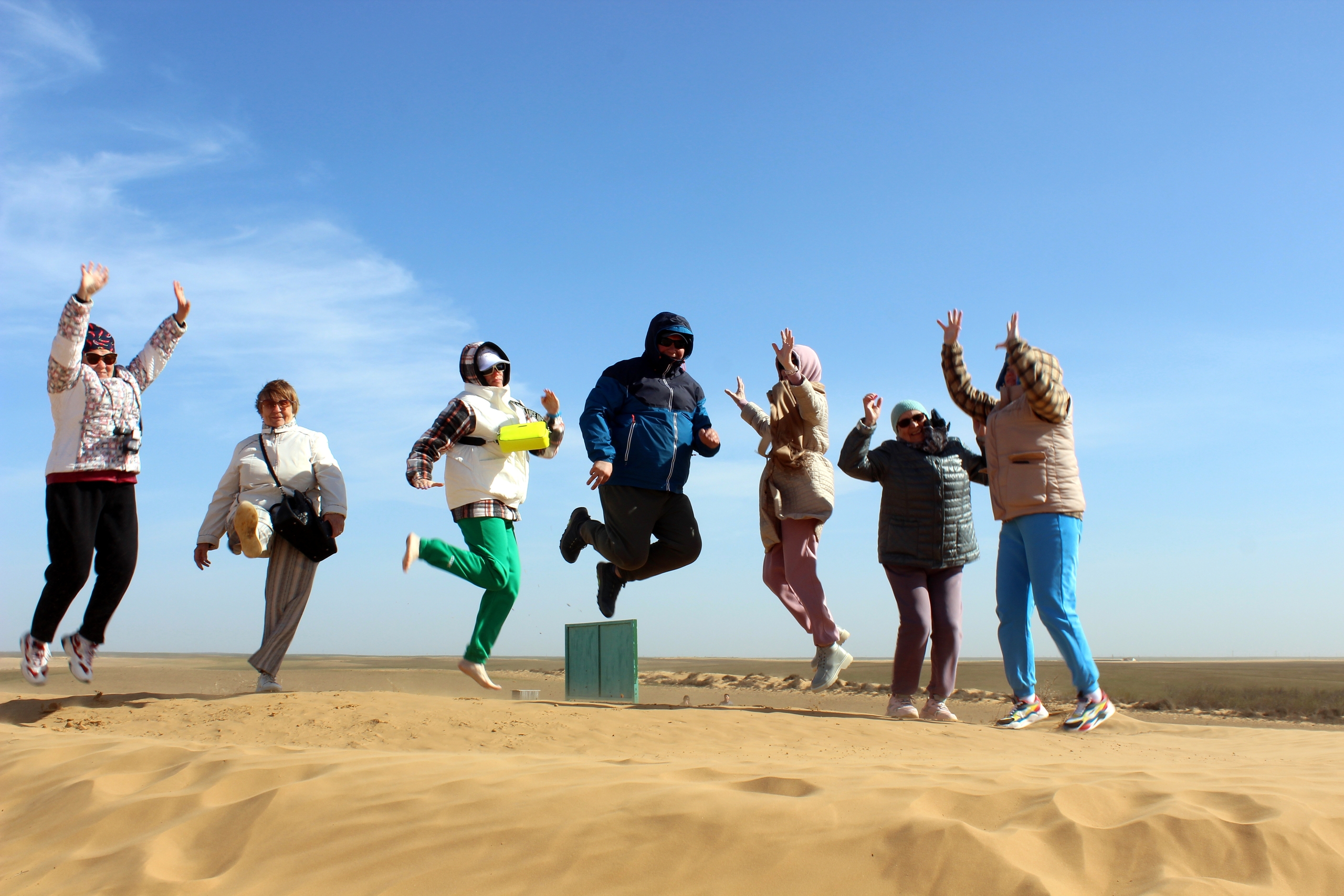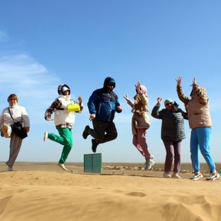 - - участие в эколого-этнографическом маршруте Адык страна Бумба (поющие песчаные барханы, солёное розовое озеро, горящий источник, быт национального жилища калмыков, вязание калмыцкого узла, метание аркана, национальные костюмы, стрельба из лука, катание на верблюдах)