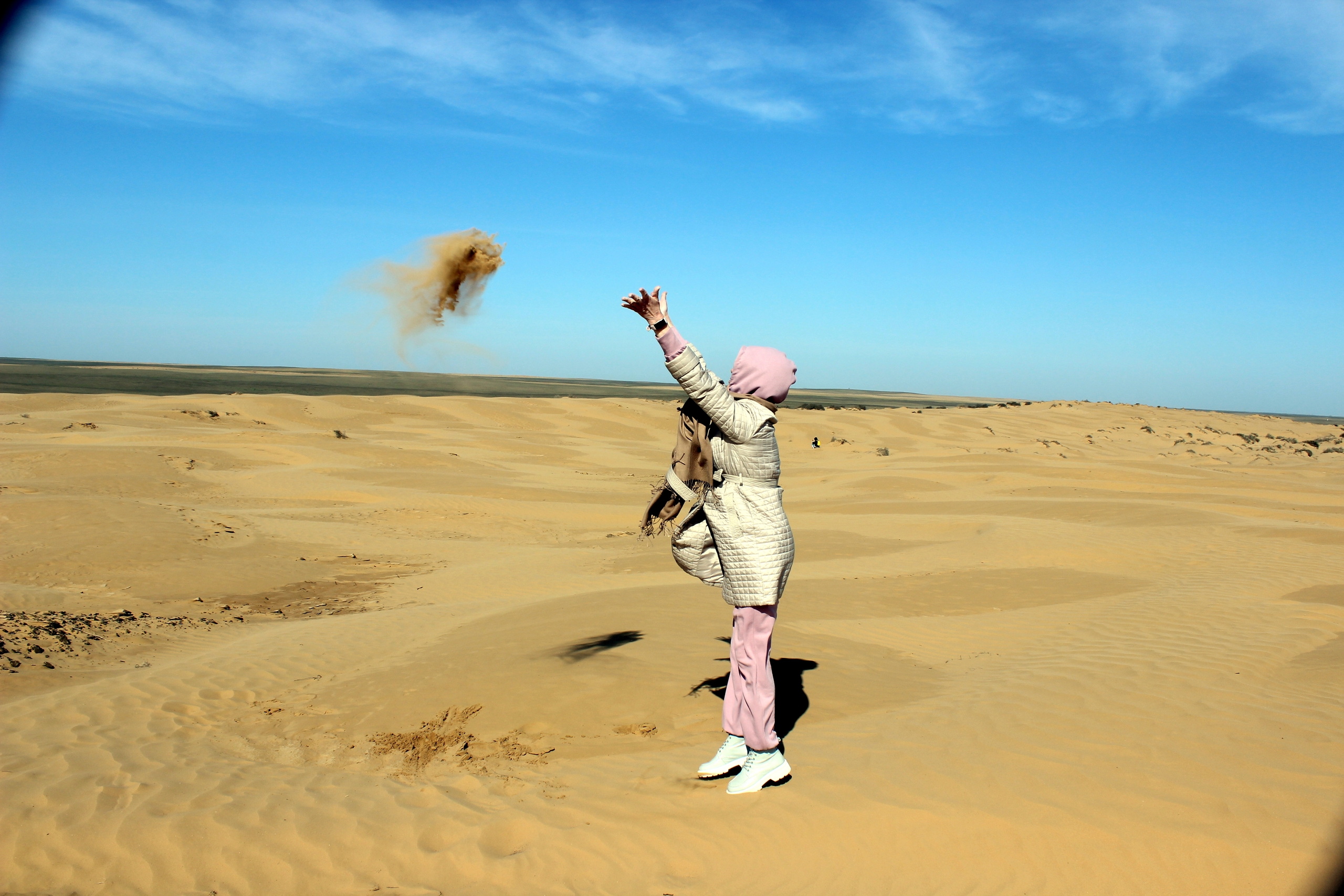 14:00 17:00 (19:00) — маршрут Адык — страна Бумба — поющие песчаные барханы — солёное розовое озеро — загадочный горящий источник