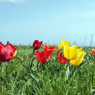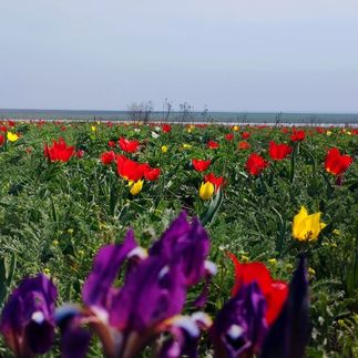 Маршрут проходит по местам, где в середине апреля цветут поля диких тюльпанов — без заборов, дорожек и толп людей.