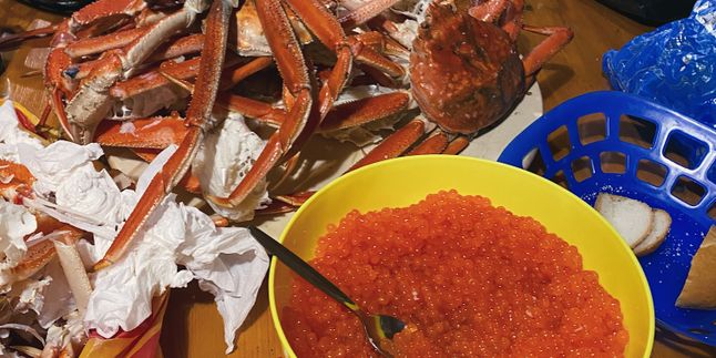 Сегодня мы отправимся на восхождение на экструзию Верблюд - удивительную смотровую точку, позволяющую во всей красе увидеть сразу три возвышающихся над долиной вулкана. После подъема наверх вдоволь нагуляемся по скалистым холмам на вершине экструзии и сделаем много фотографий - виды вокруг потрясающие! Вдалеке здесь видны белоснежные снега и ледники, совсем рядом во всей красе открываются вулканы Авачинский 2800 м, Корякский 3456 м и Козельский 2190 м, а на горизонте стелется берег Тихого океана и плывут облака, которые зачастую оказываются ниже нас. В хорошую погоду перед нами также предстанет Авачинская бухта и окружающие ее прибрежные скалы. Возвращаемся на базу, где нас ждет сытный обед, приятная усталость и восхищение от увиденного.Вечером на закате вас ждет баня с видом на вулканы и мастер-класс по засолке свежей икры и приготовлению крабов. Поверьте, такой свежей икры и такого краба вы не попробуете больше нигде, в том числе в обычных ресторанах на Камчатке! Мы заказываем самый свежий улов, который привозят прямо из порта накануне ночью.