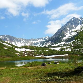 Утром выезжаем к одному из красивейших мест камчатской первозданной природы - Вачкажцу, который является высочайшей вершиной Южно-Быстринского хребта. Вачкажец это горный массив и в тоже время древний потухший вулкан, главная его вершина высотой 1576 м. Но туристические тропы здесь ведут не к вершинам, а к водопадам и горным циркам. Маршрут не сложный и дает возможность насладиться красивейшими видами на горное озеро и возвышающиеся острые пики. Ландшафт Вачкажца заметно отличается от районов активного вулканизма, сам он напоминает скорее швейцарские Альпы. На склонах его можно наблюдать множество субальпийских цветов.