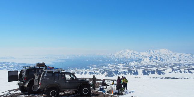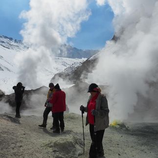 Отправляемся к северному подножию вулкана Мутновский, где расположена геотермальная электростанция и Дачные горячие источники, которые также называют малой долиной гейзеров.Среди огромных сугробов мы увидим зеленые проталины парящей земли, где бьют фонтаны парогазовых струй, бурлят водяные и грязевые котлы. По пути будем наблюдать также вулканы и множество белоснежных сопок.