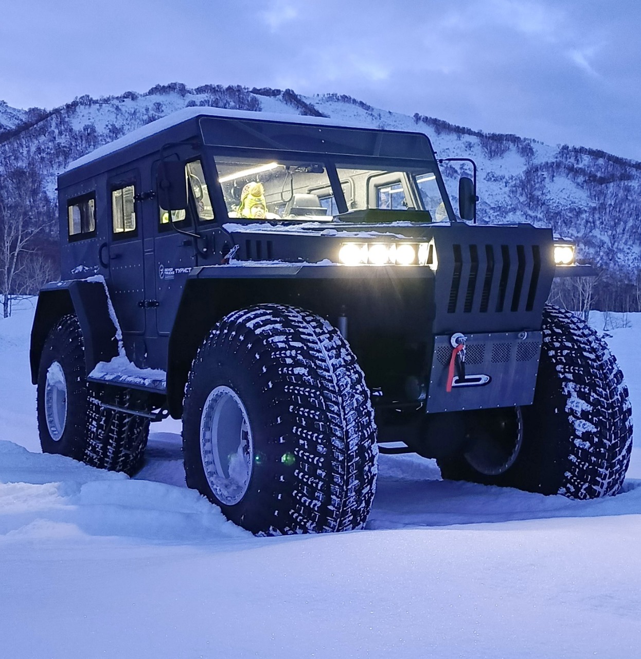 Эта зимняя поездка на шестиколесном монстре по зимней Камчатке запомниться вам своей необычностью и комфортом !
