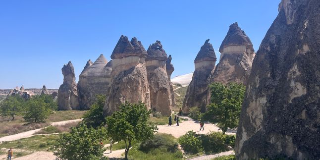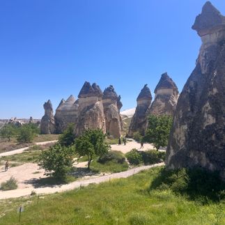 Утро проводим среди самых фотогеничных фейских труб Каппадокии многоголовые грибочки-скалы, будто декорации к фильму. Здесь легко объяснить, как ветром и водой из обычных пород получилось такое чудо, и дать группе время на потеряться в узких тропках, норах и лестницах.