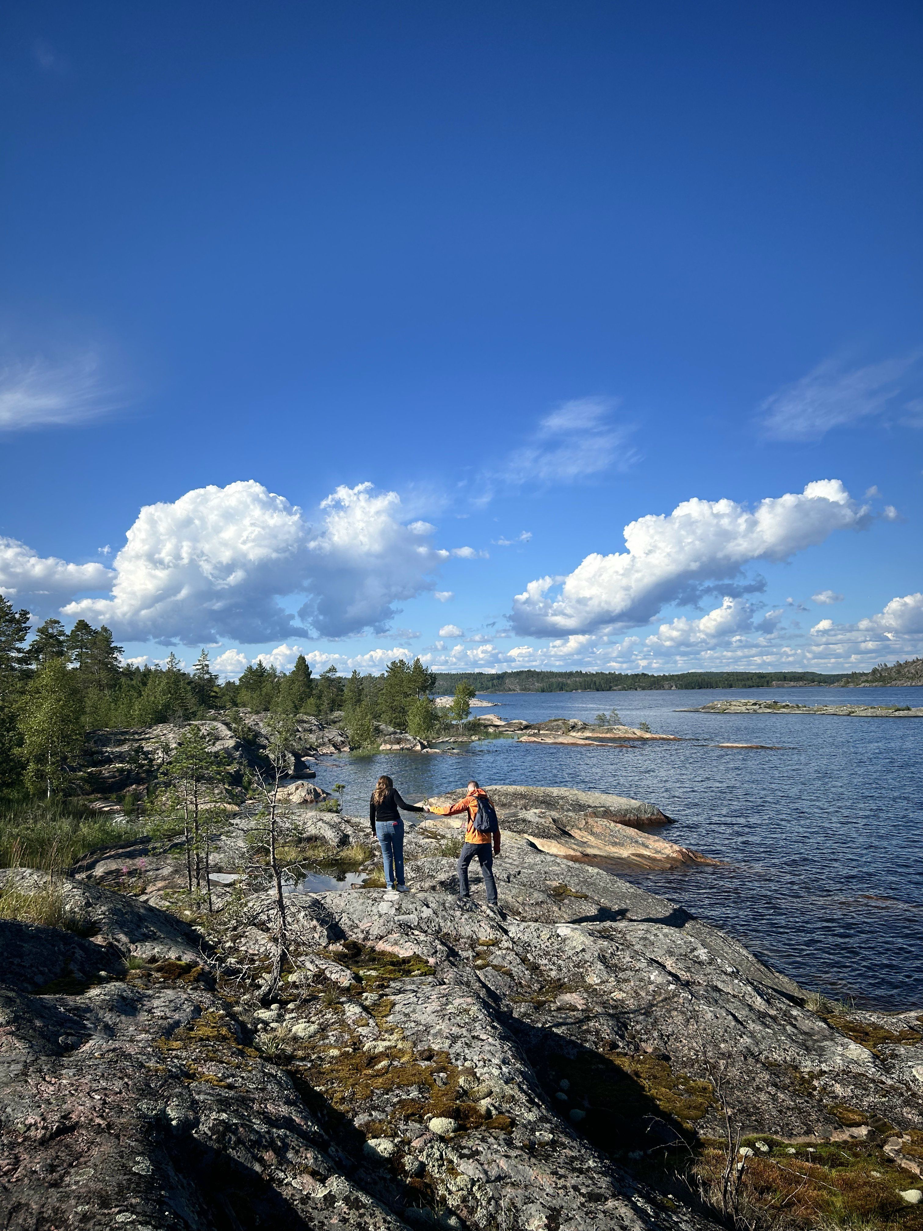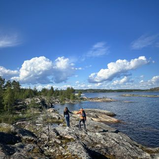Если погодные условия будут благоприятными, мы отправимся на катере по Ладожским шхерам. Это позволит нам увидеть острова и скалы с воды - а так же искупаться в Ладоге в непромокаемом костюме ( Айсфлоатинг - бронируется заранее) В случае, если навигация будет недоступна, мы пройдемся по скрытым тропам вдоль Ладоги, наслаждаясь видами островов с берега.