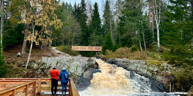 На обратном пути нас ждут Рускеальские водопады (Ахинкоски), место, где снимали фильм А зори здесь тихие. Это система небольших, но бурных водопадов, эко-тропа и подвесные мостики над самым падением воды, причудливые деревянные скульптуры. Парк будет интересен и детям, и взрослым. К тому же именно здесь можно приобрести любые карельские ягоды, включая морошку, чаи, травы и многое другое полезное и вкусное.