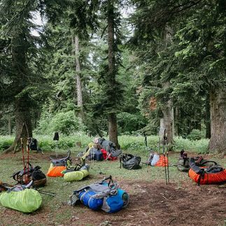 - Вкусное трехразовое питание по авторскому меню на маршруте (завтрак, обеденный перекус, ужин), приготовленное на костре или горелках;