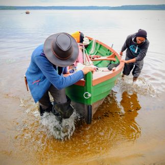 Именно поэтому мы будем ходить здесь на традиционных для Русского Севера парусных судах. Правда, не на кенозерках — местных плоскодонных вытянутых лодках, а на карбасах — тех, что обычно использовали для морского промысла. Построили мы их на верфи Товарищества Поморского Судостроения в Архангельске. В июле 2021 карбасы приняли участие в поморской карбасной регате, и сразу после переехали на Кенозеро. Форма сельдяного карбаса отличается особыми обтекаемыми обводами, что делает его удобным и легким на ходу и лёгким в управлении. Путешествуя под парусом, мы не просто осматриваем достопримечательности сам способ передвижения становится приключением, достойным делом для команды.