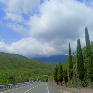 Горы и перевалы: Дорога через живописные перевалы с видами на Главную гряду Крымских гор.
