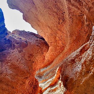 Горный ландшафт представлен здесь красно-желтым песчаником, что свидетельствует о многотысячной истории коррозии рельефа. Поэтому извилистые проходы длиной до 2,5 км. порой удивляют своими фигурами и строениями.