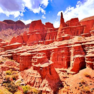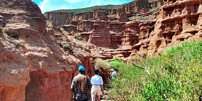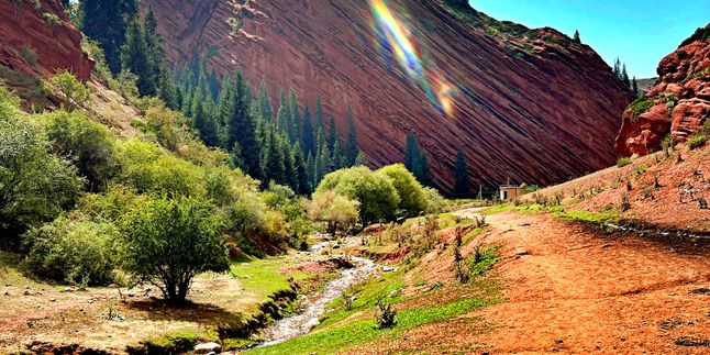 Далее путь пролегает к каньону Марс - расположенного на южном берегу озера Иссык-Куль. Он представляет собой гряду красных гор похожих на пейзажи одноименной планеты Марс. Здесь множество интересных рельефов и структур, созданных обилием осадков в течении долгого времени. А цветовая гамма поразит своей красотой. Взобравшись на самый верх, откроется потрясающий вид на озеро Иссык-Куль. С одной стороны красные горы, а за ними снежные пики и зеленые луга.
