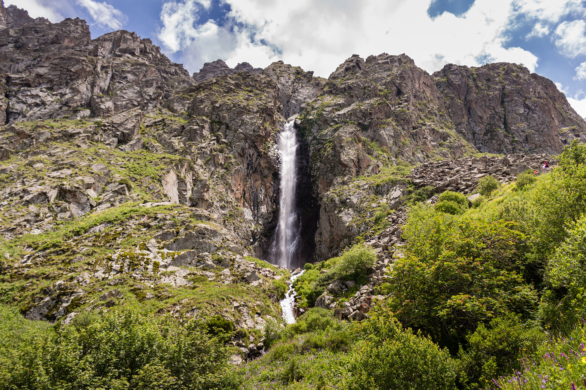 После байдарок мы отправимся в ущелье “Джеты Огуз”, увидим гору “Семь быков” и гору “Разбитое сердце”, и конечно услышим интересные легенды про эти места. В ущелье мы возьмем лошадей и прогуляемся верхом к водопаду “Девичьи косы” и к долине цветов “Кок-Жайык”, это потрясающие места по своей красоте.