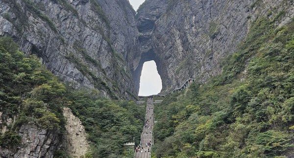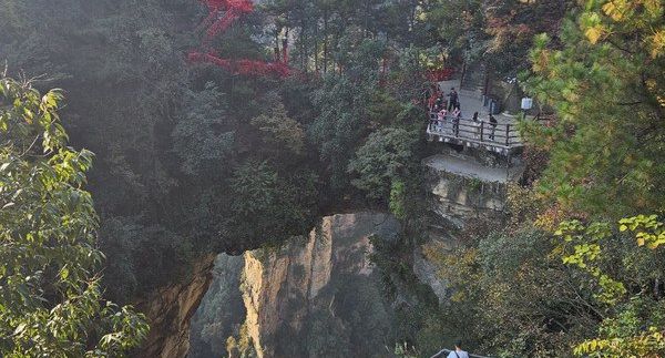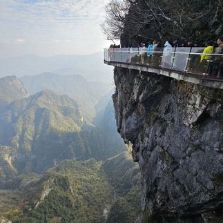 Гора Тяньмэнь: канатная дорога, Небесные врата, стеклянные тропы, горный монастырь. Переезд в Фуронг, вечерняя прогулка по Фуронгу. Ночь в Фуронге с видом на водопады.