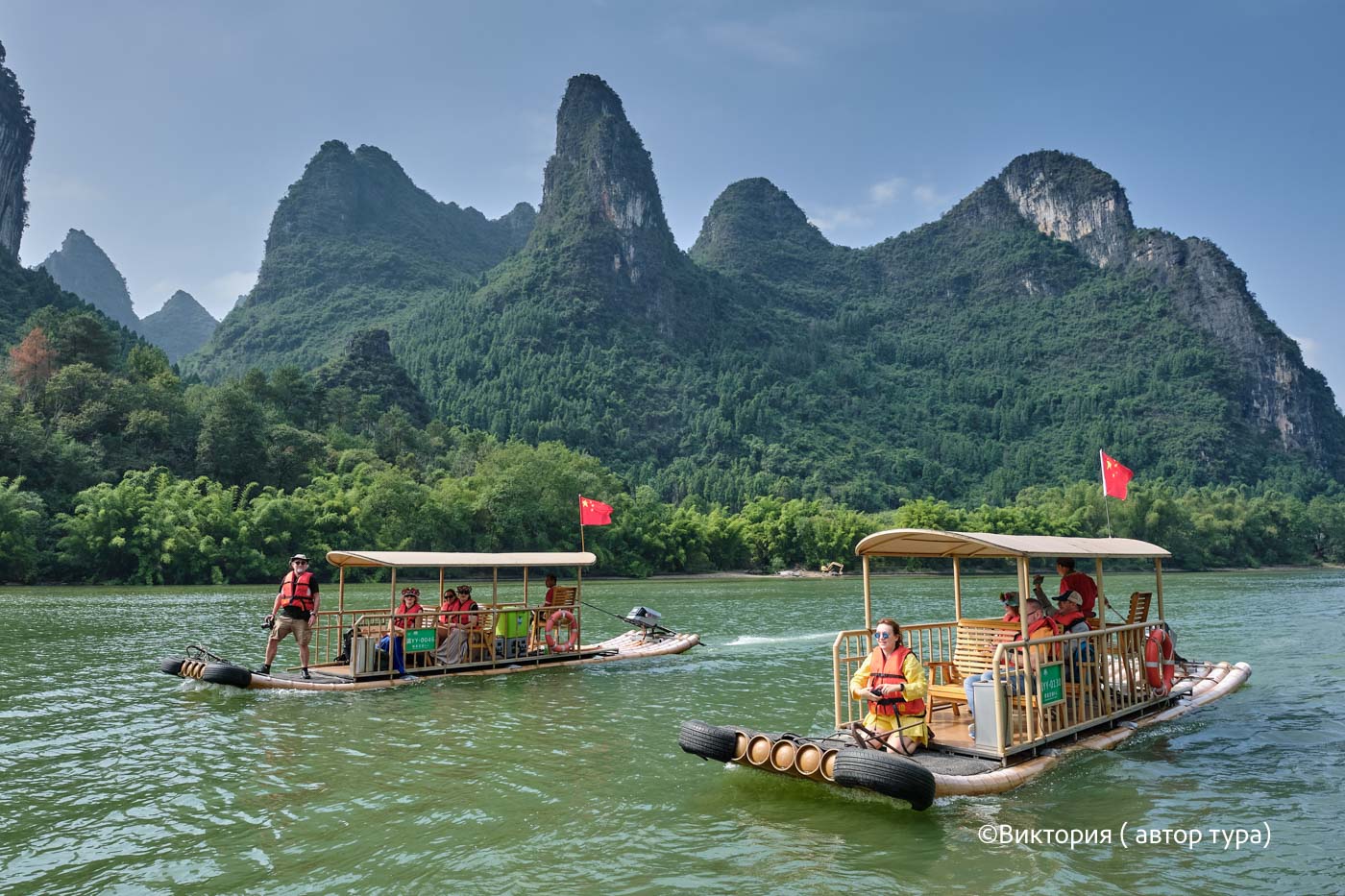 После прогулки по пещере мы отправимся на пирс, сплав на плоту (около 50 минут), шаттл до деревни Синпин. Увиденное никого не оставит равнодушным: река, словно шелковый пояс, извивается среди тысячи неповторимых холмов и гор, которые как мираж неожиданно вырисовываются из тумана и исчезают снова.