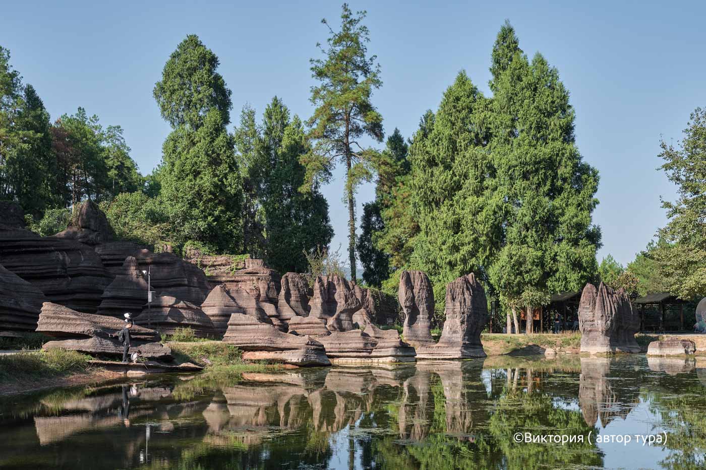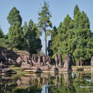 По пути мы сделаем две остановки: в парке Красный каменный лес и в древнем поселке Фужун.