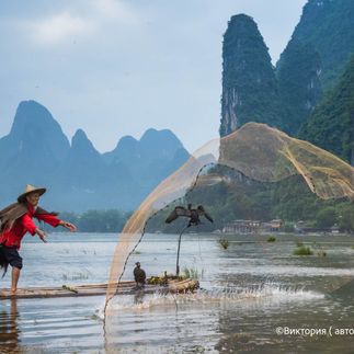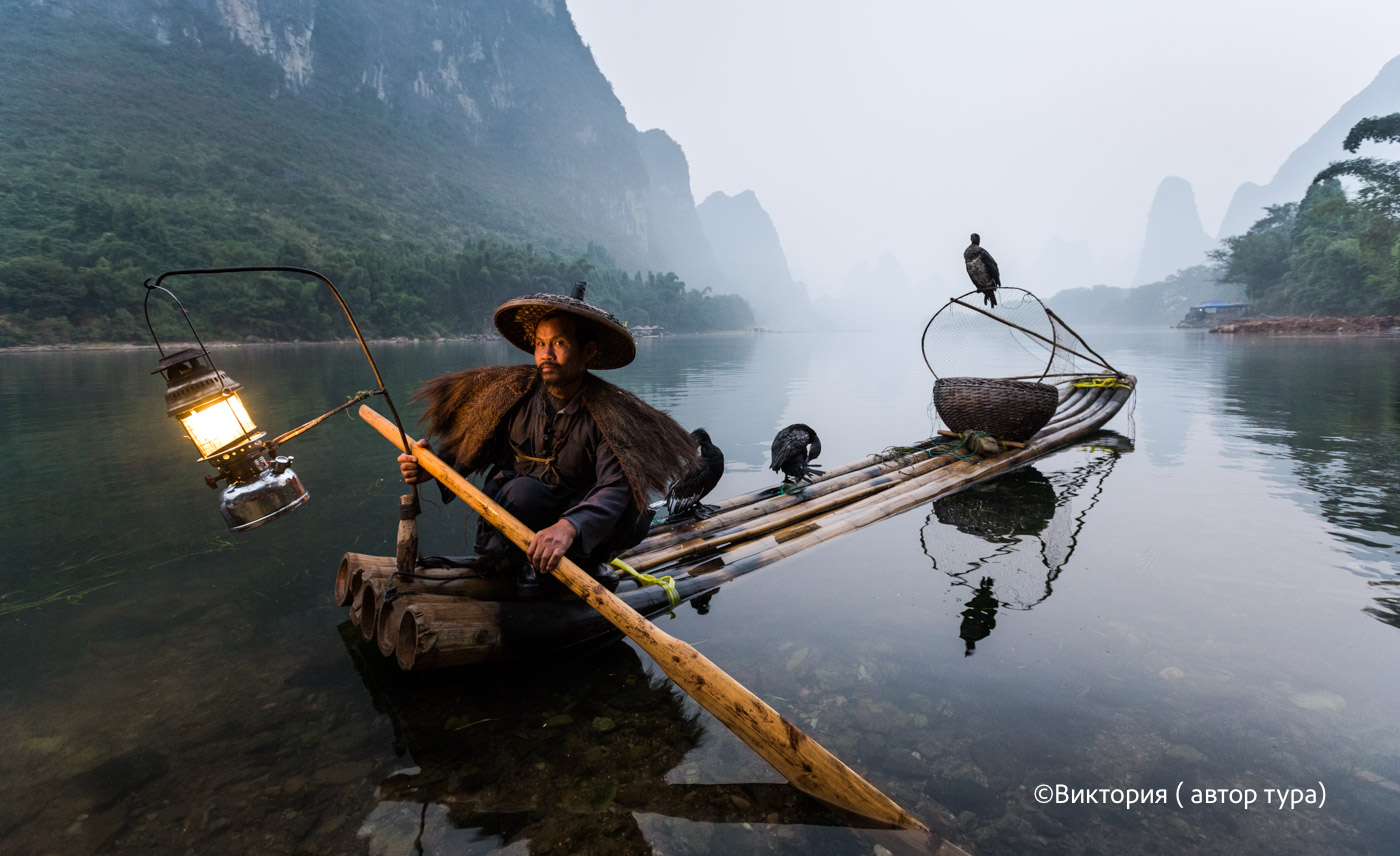 - Круиз на корабле по реке Лицзян, фотосъемка рыбаков на реке Ли;