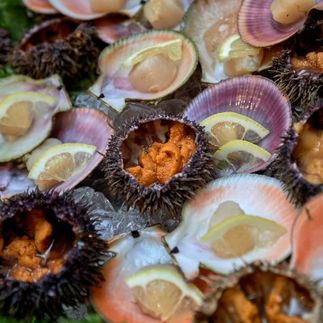 - Морской ёж с соевым соусом и перепелиным яйцом