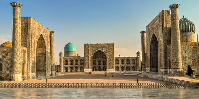 Регистан — главный символ Самарканда, комплекс из трех медресе с величественными минаретами и мозаикой. Отличное место для фотографий и знакомства с историей Средней Азии.