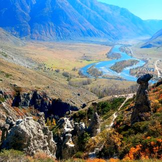 Проснувшись утром в невероятно красивой долине Чулышман, мы отправимся на речную переправу и совершим подъем к самым настоящим каменным грибам!