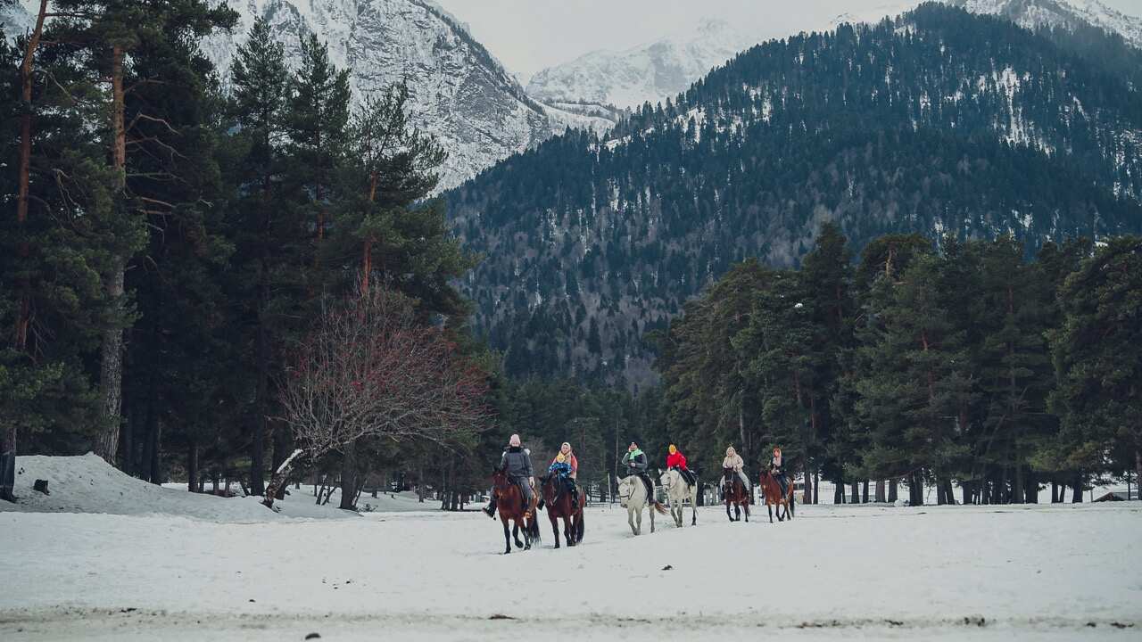 Конные прогулки: откройте для себя живописные горные пейзажи, проезжая по снежным тропам и сосновому лесу верхом на лошади. Это не просто прогулка, а возможность увидеть горы с новой стороны.