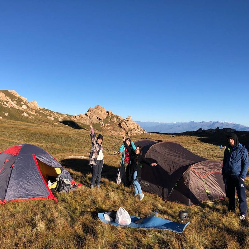 После обеда начинаем пеший поход к месту ночёвки. По живописным тропам поднимаемся выше и разбиваем палаточный лагерь. Готовим ужин, отдыхаем, аклиматизируемся.
