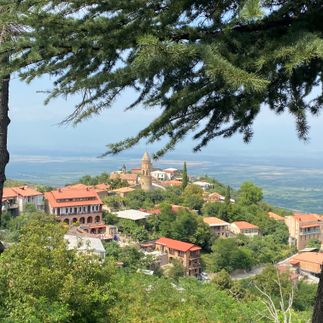 3. Сигнахи: город любви с видом на долину. Дальше нас ждёт потрясающе красивый и романтичный город Сигнахи - город любви с чудесным видом на Алазанскую долину, виноградники и заснеженную цепь Кавказских гор. Прогуляемся по мощёным улочкам, пройдём по открытому участку крепостной стены - одного из самых масштабных фортификационных сооружений Грузии. А потом вкусно пообедаем на террасе ресторана с видом на всю долину.