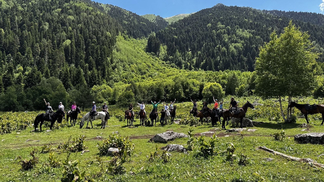 В 12.00 трансфер заберет вас от аэропорта Минеральные воды и отвезет на нашу базу в Архызе на Софийской поляне. После расселения проведем собрание-знакомство, инструктаж и отправимся на легкую конную прогулку. Вы должны размяться перед завтрашним походом и познакомиться со своим конем и инструкторами.