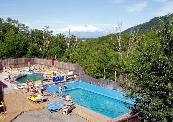 Утром после завтрака выезжаем в район Мутновки. Дорога очень интересна: будем проезжать у самого подножия вулкана Вилючинский, далее по крутому серпантину на Вилючинский перевал, откуда открываются впечатляющие виды. Спустившись с перевала на горное плато, заселяемся на нашу турбазу, расположенную возле озера в живописном месте (по несколько человек в комнате, спать в спальниках на двухъярусных кроватях). После обеда выезжаем к Мутновской геотермальной электростанции, рядом с которой находится Малая долина гейзеров (Дачные горячие источники). Здесь вдоль горного ручья из-под земли бьют множество горячих ключей и фумарол. При желании можно принять ванну в купальне с голубой глиной. Пешком около 4 км по пересеченной местности. Возвращаемся в турприют. Ужин, костер, гитара.