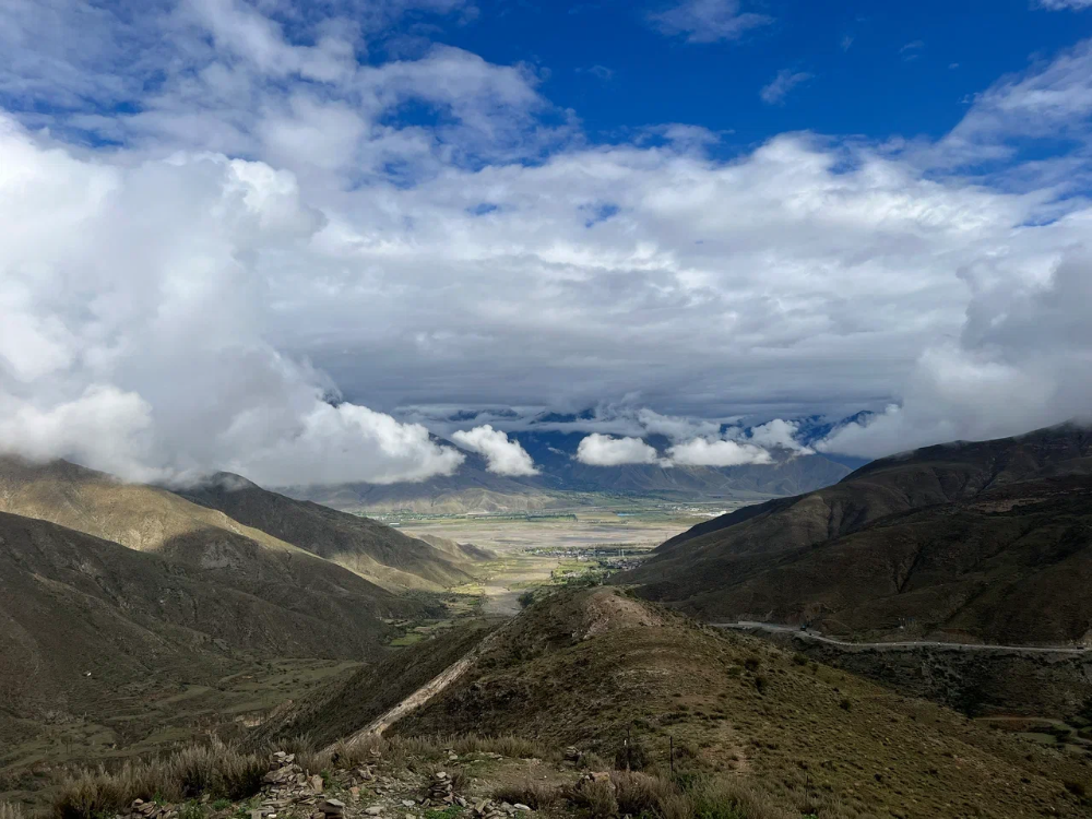 Прилёт в Лхасу — столицу Тибета. Встреча в аэропорту, час дороги до отеля через тоннели и долину Кьи-чху. Свет здесь особенный: воздух редкий, небо близко, всё будто снято на профессиональную камеру.