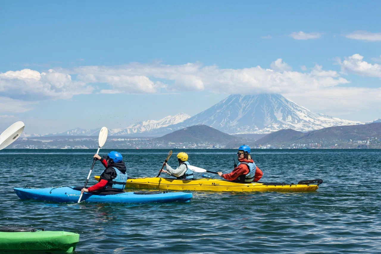 Косатки и медведи — 10 дней настоящего сафари по дикой Камчатке: морской круиз в бухту Русскую, вертолетная экскурсия к горным вершинам, джип-тур в Малую долину гейзеров и каякинг на озере Толмачева, где обитают медведи.