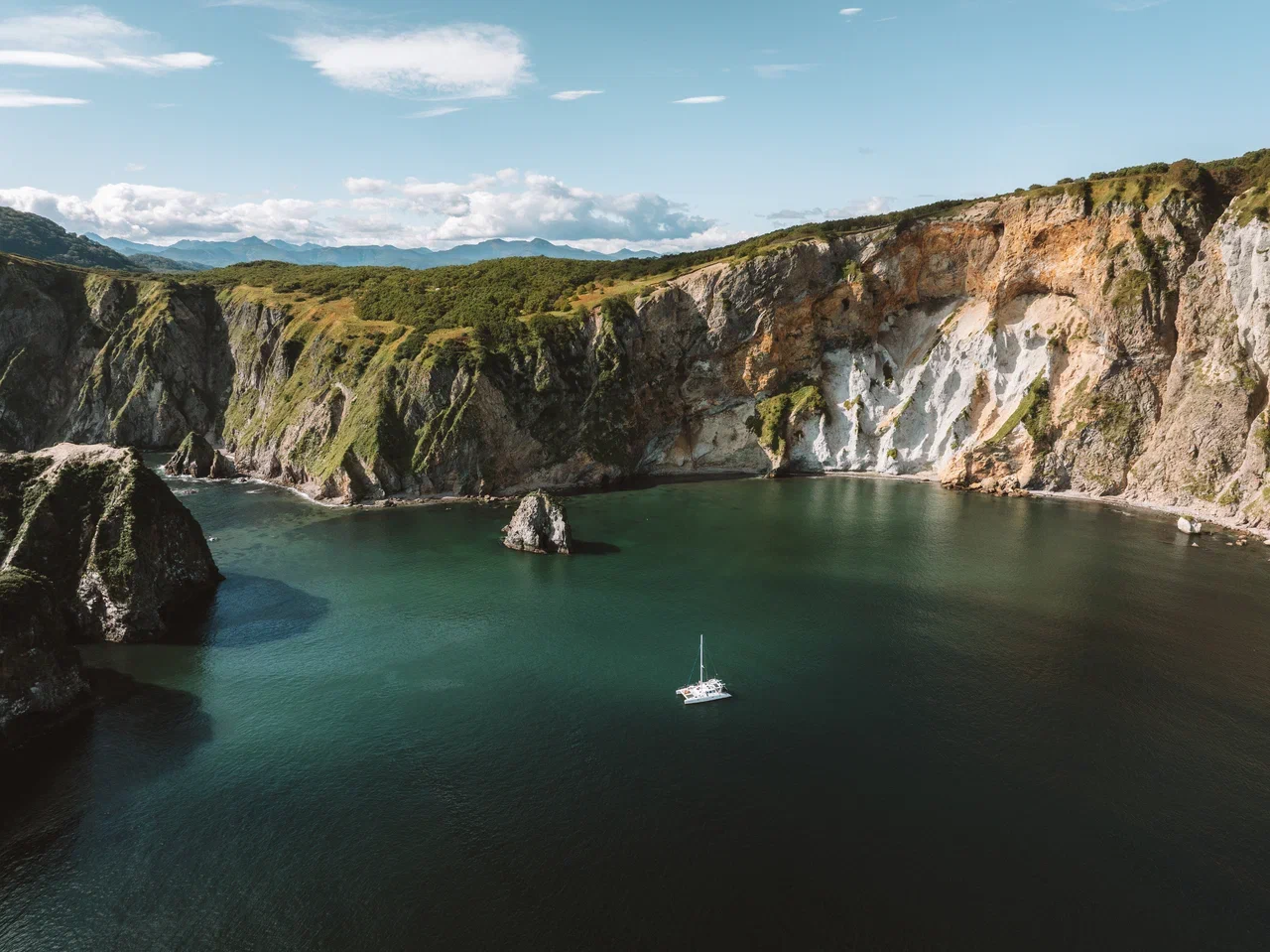 Смотрите в оба! Ведь прямо по курсу могут быть косатки и киты! К вечеру катамаран войдет в воды бухты Русская, протяженность которой около 8 км.