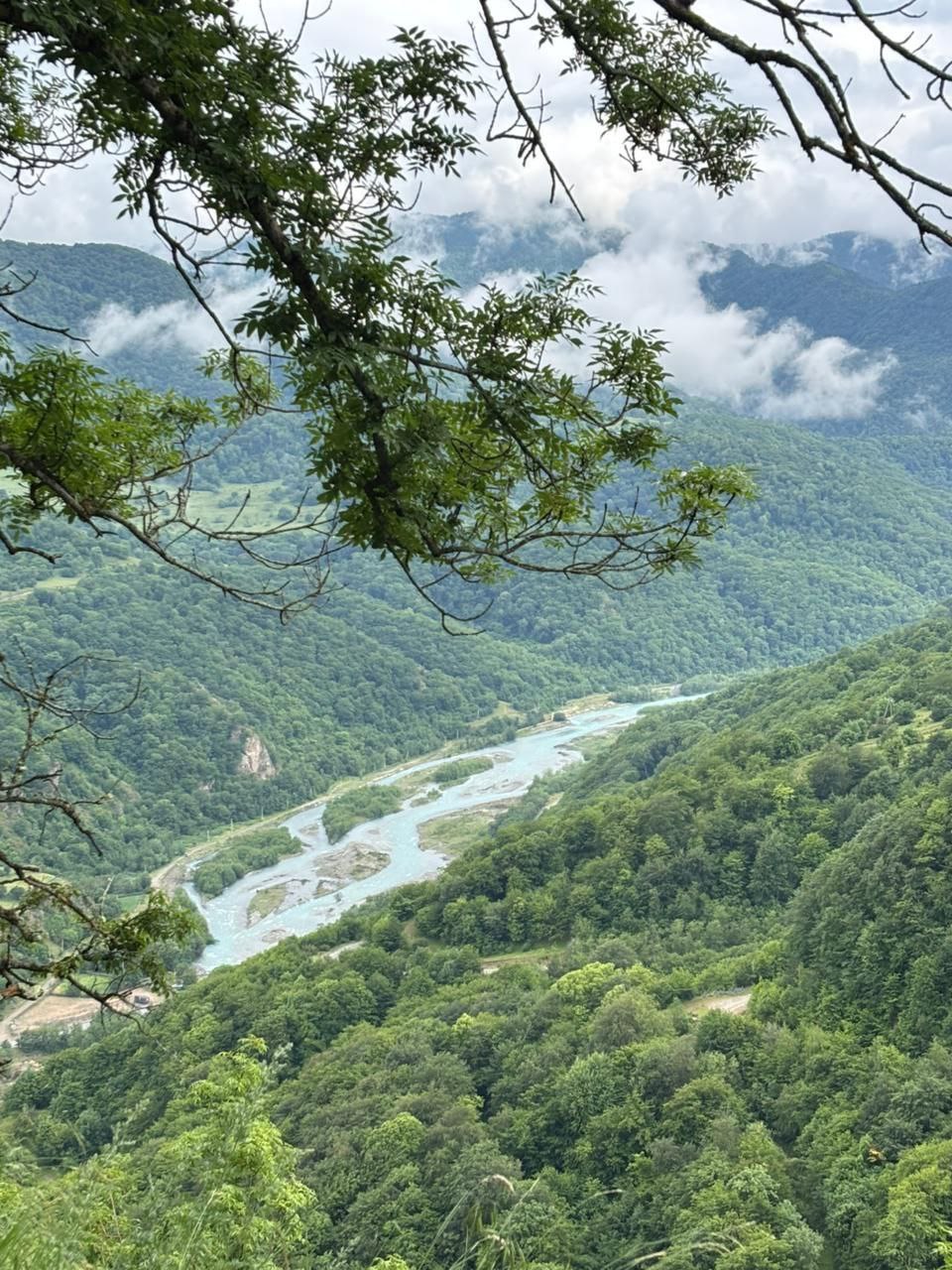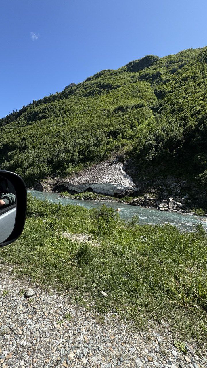 На обратном пути в Домбай останавливаемся у серебояной реки Уллу-Муруджу, едем отдыхать.