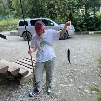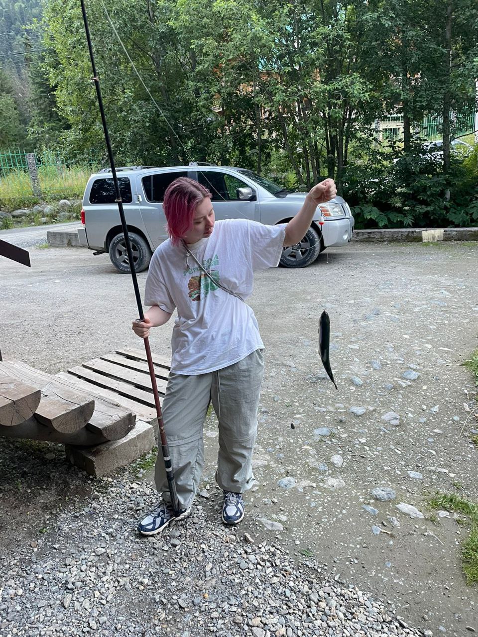 На ужин заезжаем в Форелевое хозяйство, ловим свою рыбку, кушаем.