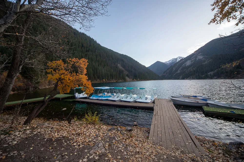 Система озёр Кольсай состоит из трёх озёр, расположенных на высотах от 1800 до 2850 метров над уровнем моря. Мы поднимемся на машине к первому озеру, вокруг которого проложены прогулочные тропы, а по зеркальной глади можно кататься на лодках и катамаранах. Далее только пешком: к озеру Кольсай-2 ведёт обустроенная тропа, а вот на Кольсай-3 можно попасть только с ночёвкой в палатке и лишь при наличии разрешения от пограничников. Затем поедем на Каинды - водоём, в котором недвижно стоят могучие ели.